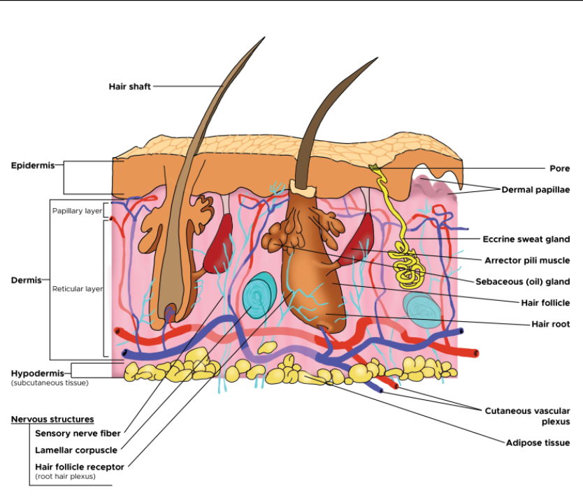 Yousef, H., Alhajj, M. and Sharma, S. (2022). [Figure, Cross section of layers of Skin]. [online] http://www.ncbi.nlm.nih.gov. Available at: https://www.ncbi.nlm.nih.gov/books/NBK470464/figure/article-21212.image.f2/?report=objectonly [Accessed 20 Mar. 2024].